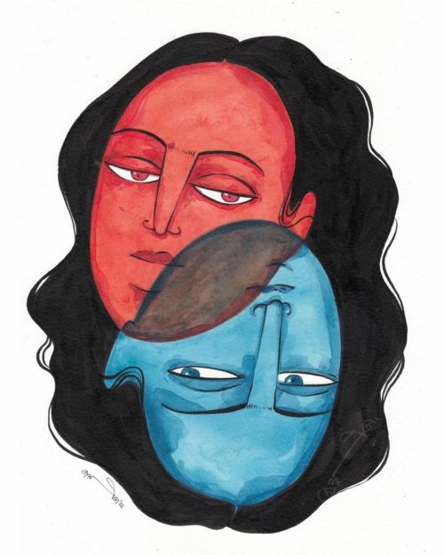 Here in this painting i was exploring the duality of moods.