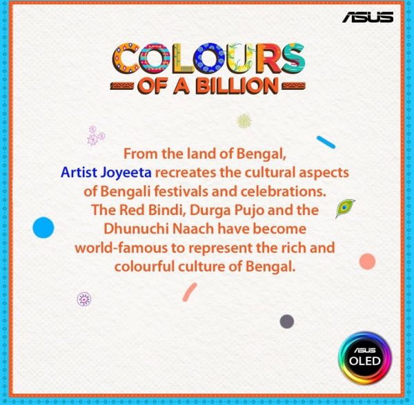 Art made on the OLED & Intel Powered ASUS Laptop showcasing the rich culture and colour of Bengal through the cultural markets that have become world-famous in their association with Bengal. Visit https://bit.ly/31p8Due to look at more artworks made on the #ASUS ZenBook Flip