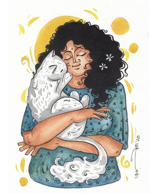 He behaves like a cat !😂 Watercolour and ink on paper.