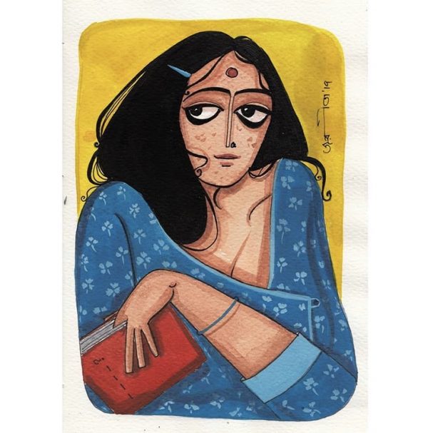 Sitting with a book,probably a fiction,