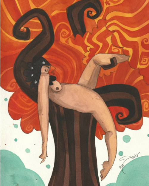A resting woman, but where, in the fire-like autumn trees. When it is clearly summer now. But as i can paint it anytime to feel it. That makes me feel good.