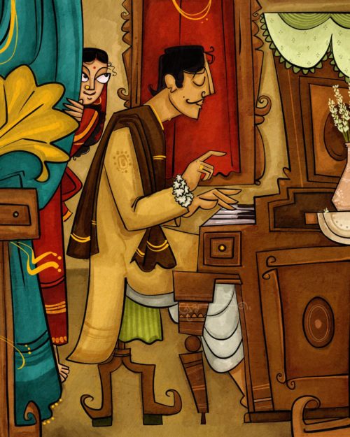 When i sat down to paint this.. I imagined my newly wed dimma, retaining the childhood urge to listen and learn, and listening to the musician create magic with the black and white keys!